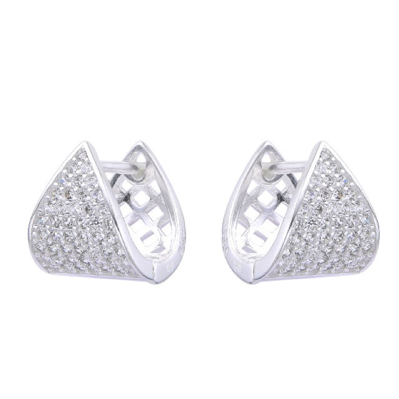 Pendientes de aro abombado con circonita cúbica, modelo F3R10, acabado fino. Cierre inglés.
