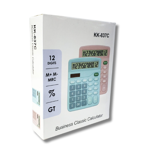 Turquoise calculator, ideal for school or office use.