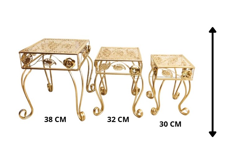 Set of 3 gold-colored metal bases, ideal for decoration or display of ornaments.