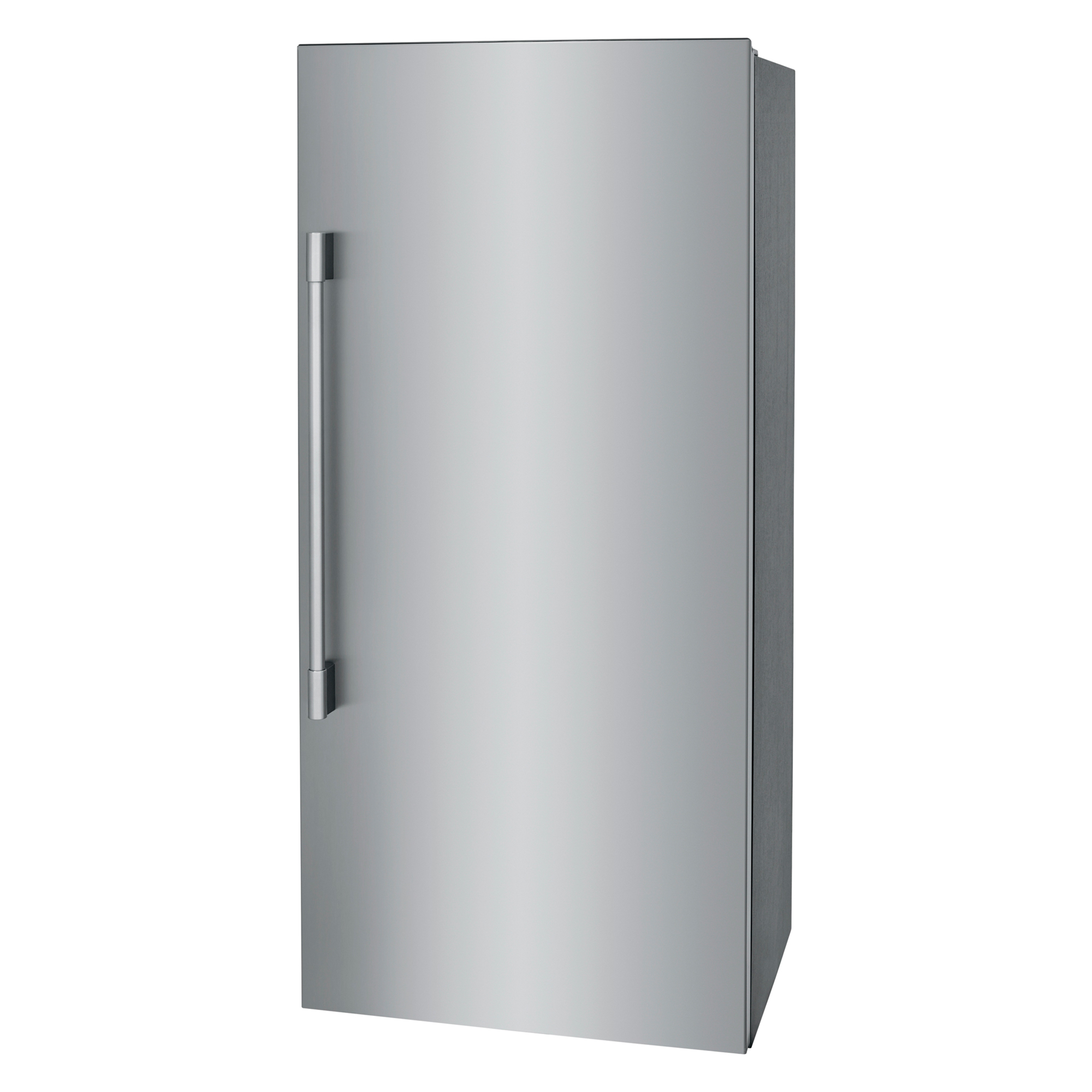 The Frigidaire Professional Smudge-Proof® single-door stainless steel refrigerator offers a stunning professional design and consistent temperature control with the EvenTemp™ Cooling System and the ability to easily accommodate up to 7 bags of groceries. Help prevent spoilage with advanced CrispSeal® Plus Crispers featuring Auto Humidity Technology, which automatically removes excess moisture. An added ethylene adsorbent reduces the gas emitted by many fruits and vegetables that causes spoilage.