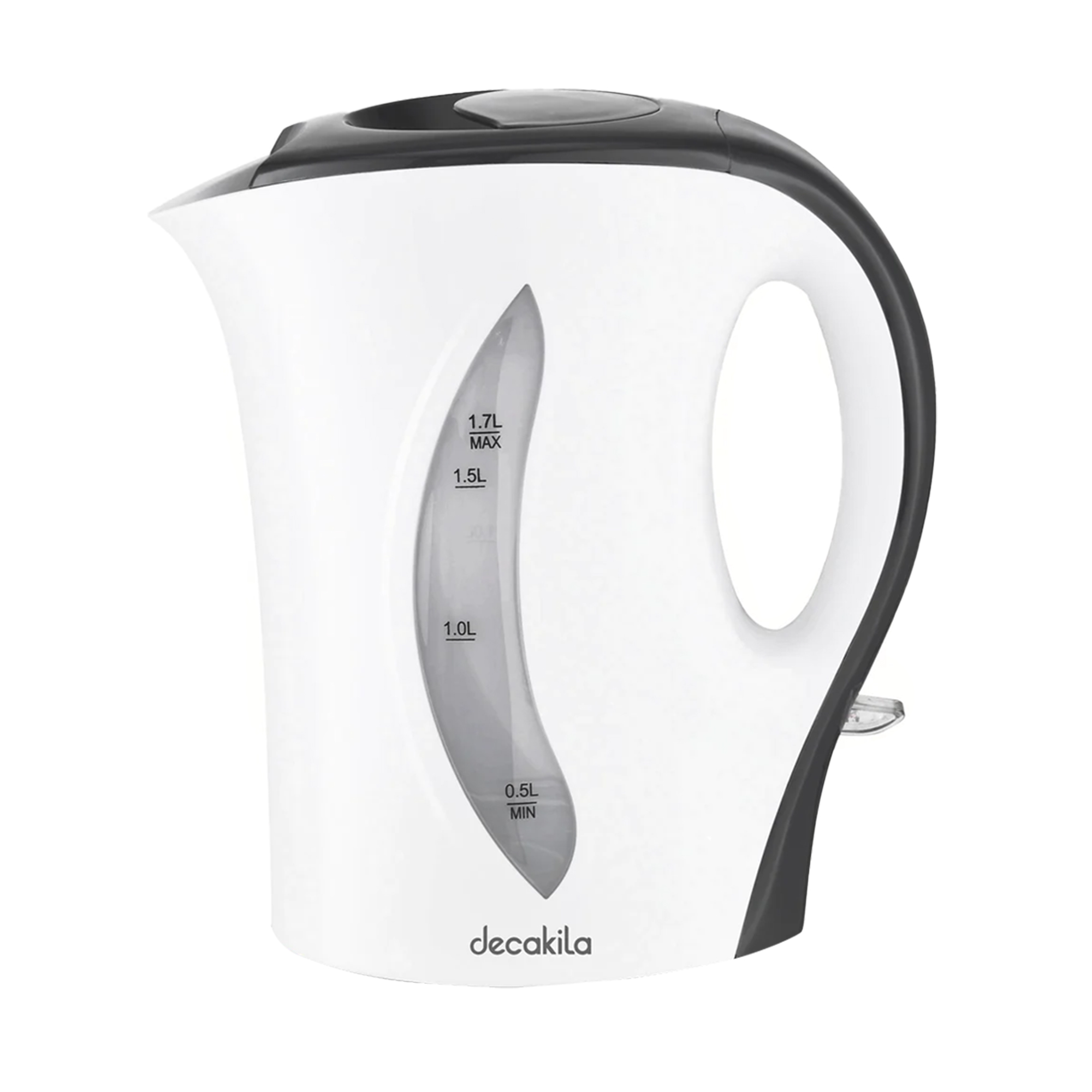 1.7 liter water kettle, plastic structure with water level indicator, 1100 watts, 110 volts, 60 Hz, automatic power cut-off after the water boils, boil-dry protection.