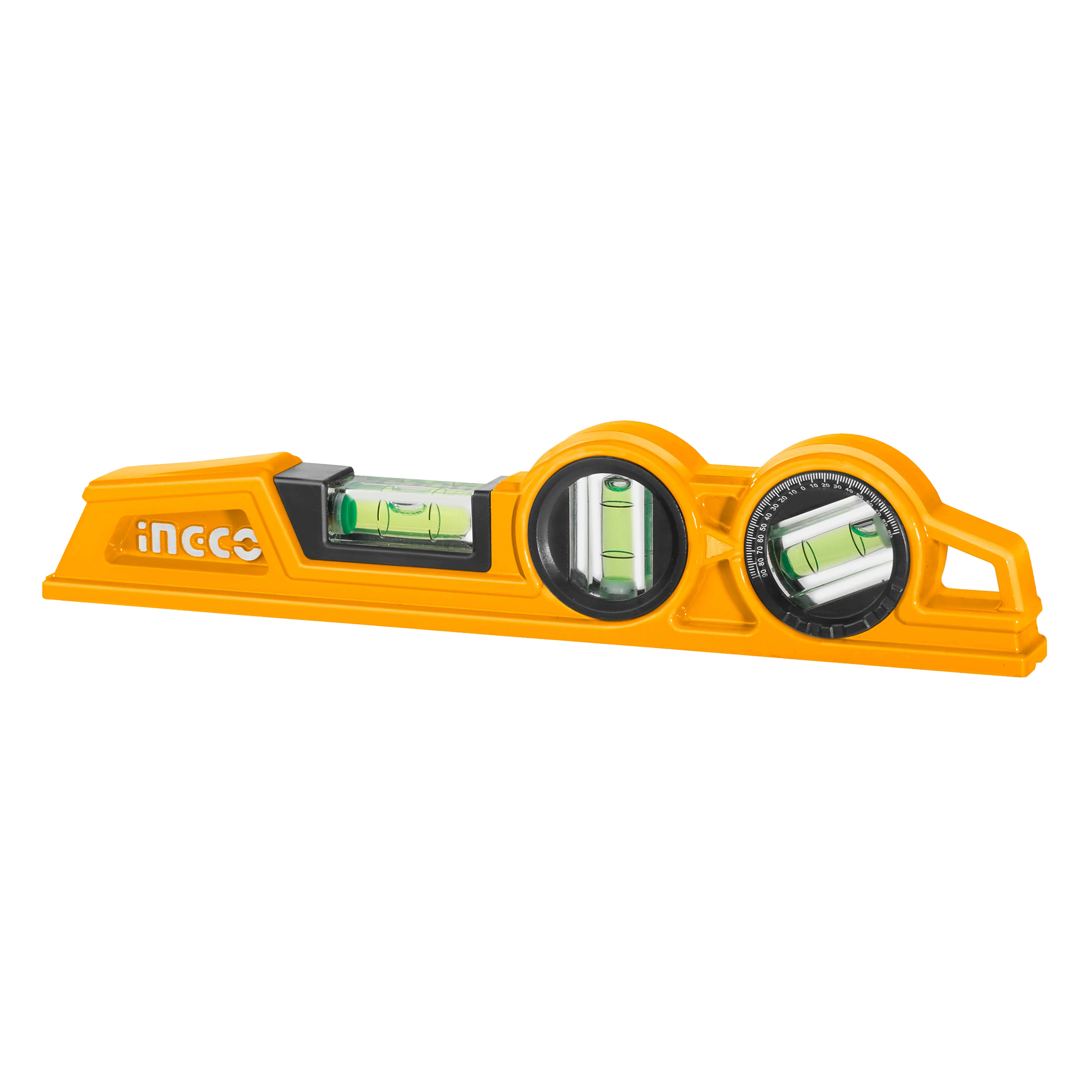 Length 24.5cm Net weight 315g Accuracy 0.5mm, finely milled bottom surface, high-strength cast aluminum conical body. 3 spirit bubbles, packed in color sleeve.