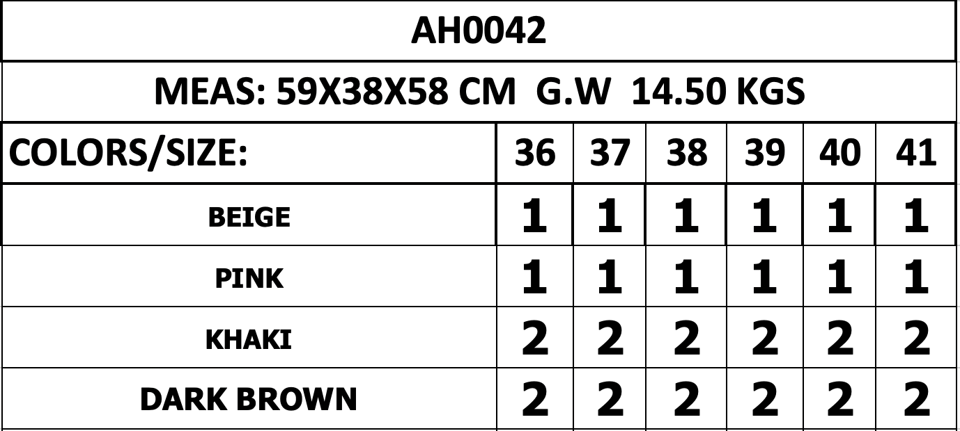 Colors: Pink, Beige, Dk.Brown, Khaki