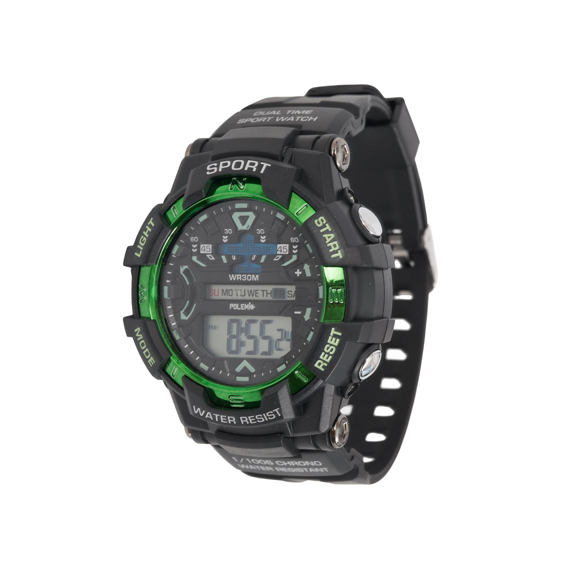 This Polemik watch is water resistant and has a digital display, adjustable resin strap and 12/24 hour time format. Available in 5 assorted colors, it is suitable for people of all ages.