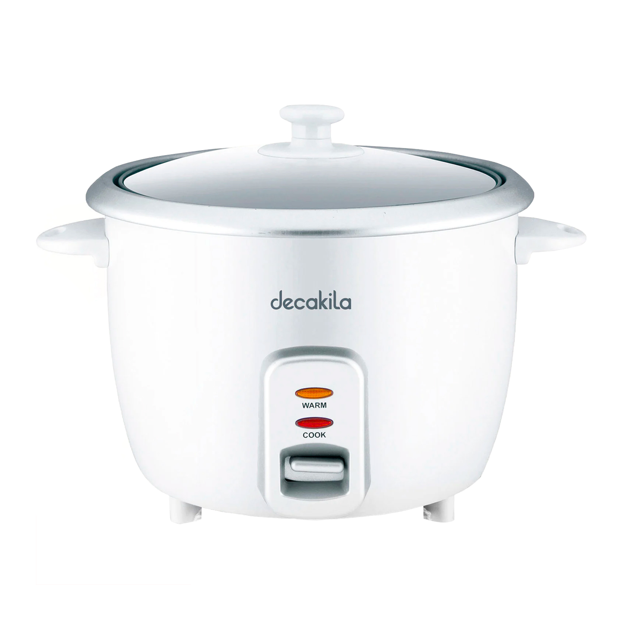 1 liter rice cooker, glass lid, power and function lights, threaded heating plate, 120v voltage, 60 Hz frequency, 400 watts power, includes measuring cup and plastic spoon.