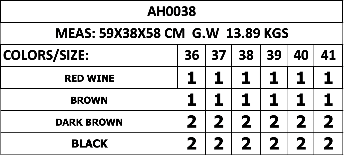 Colors: Dk. Brown, Black, Red Wine, Brown