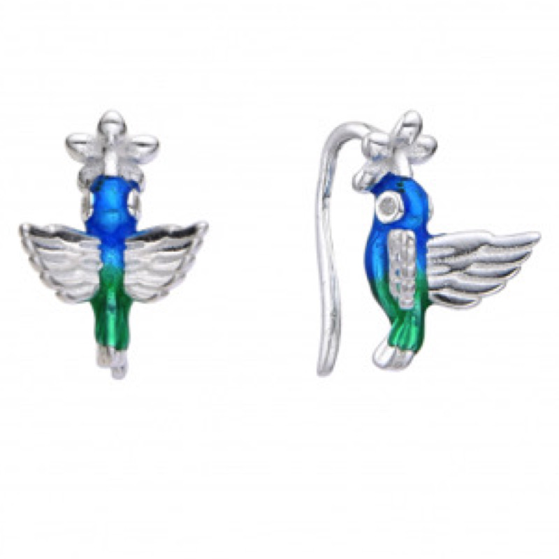 Hummingbird and flower tendrils in vibrant colors. Hook closure.